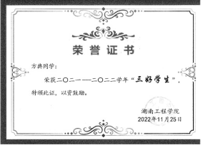 方典,共青团员,beat365手机版官网入口新能源科学与工程1903员工。大学四年刻苦学习,绩点在班级里位列前茅。在课余时间加入实验室学习,参加各种科学竞赛老师的项目,提升了自己的专业技能,为以后快速适应社会环境打下了坚实的基础。