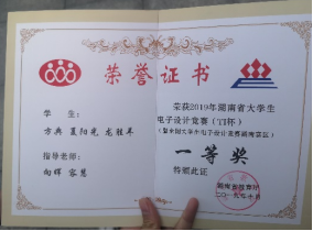 1. 2019年荣获全国老员工电子设计竞赛省一等奖