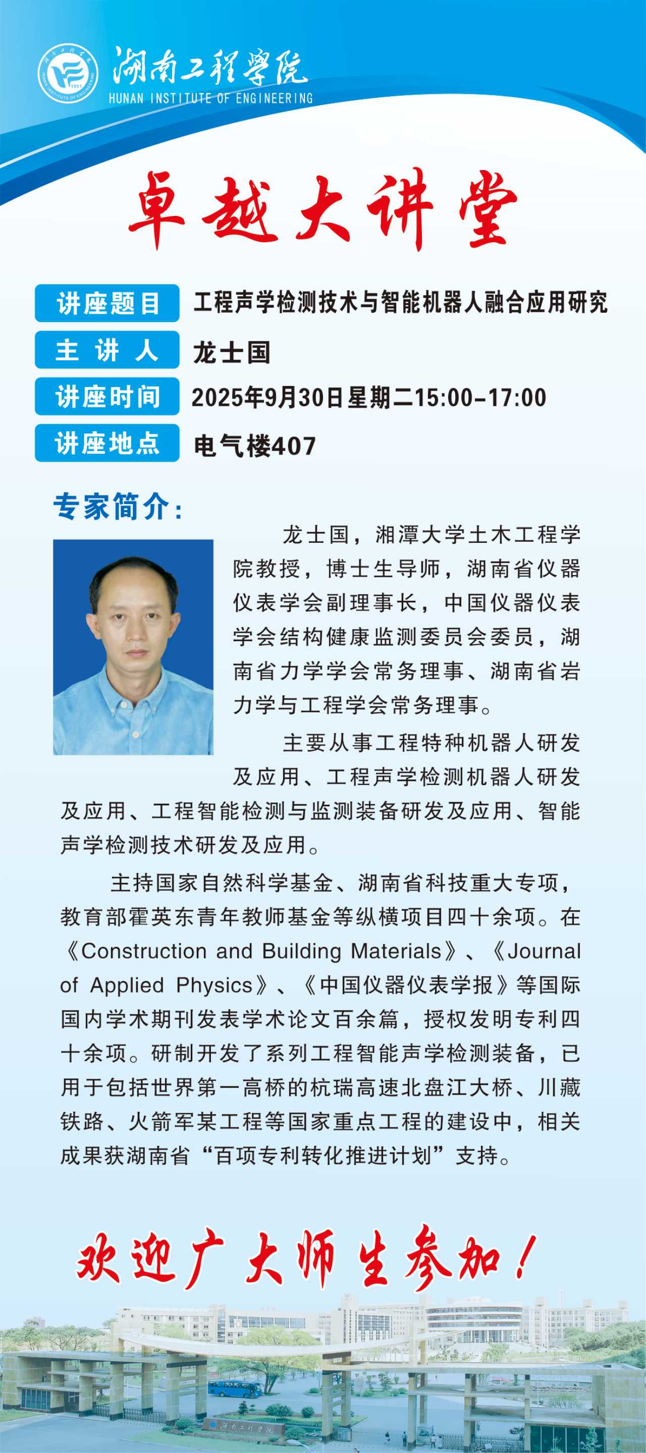 卓越大讲堂之学术讲座通知(龙士国 湘潭大学教授)
