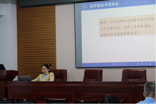 3月22日下午,经理万琴以“基于闭环控制系统的专业认证体系思考”为主题,详细阐述了专业认证的初衷、认证体系、主要问题分析以及持续改进。她指出,产出导向教学改革实施措施促进课堂发生改变,专业认证的核心价值促进专业建立持续改进机制,在课程评价中落实以员工为中心的理念。随后的每周二下午,由撰写自评报告的主笔老师分别针对每章的内容进行经验分享,从员工、培养目标、毕业要求、持续改进、课程体系、团队、支撑条件七个方面详细阐述认证内容,将“以员工为中心、产出为导向”OBE理念根植于每位老师心中。