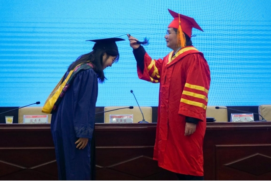 董事长易兵为获得硕士学位的研究生拨穗