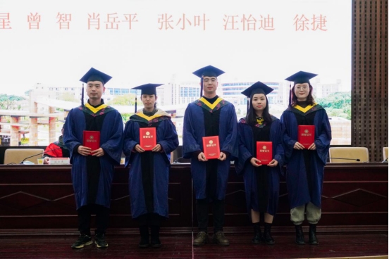 李小华宣读了2020届研究生董事长奖和优秀硕士学位论文的表彰文件。卢张宇、姚月杰、吴波获2020届研究生董事长奖,肖星、曾智、肖岳平、张小叶、汪怡迪、徐捷等人撰写的论文被评为2020届优秀硕士学位论文。会上,校领导为获奖者颁发证书。