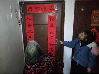 1月8日,志愿者前往东湖路大桥社区慰问孤寡老人,为老人们送去了牛奶、水果、围巾、帽子等,并与他们拉家常,帮助他们打扫卫生、整理家务等。志愿者还在现场挥毫,一笔一划皆用心,为老人们书写并张贴了春联,彰显出浓浓的年味。