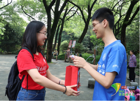 志愿者给市民发放宣传手册。中国青年网通讯员 江双凤 摄