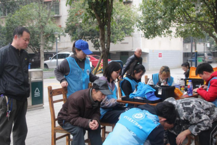 当天下午,志愿者们前往大桥社区,对社区老人们的生活情况进行了关心询问,志愿者们还在社区空地上进行摆点,义务维修社区居民的家用电器。