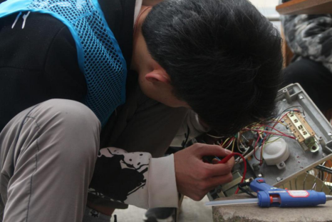志愿者正在检修损坏电器的电路