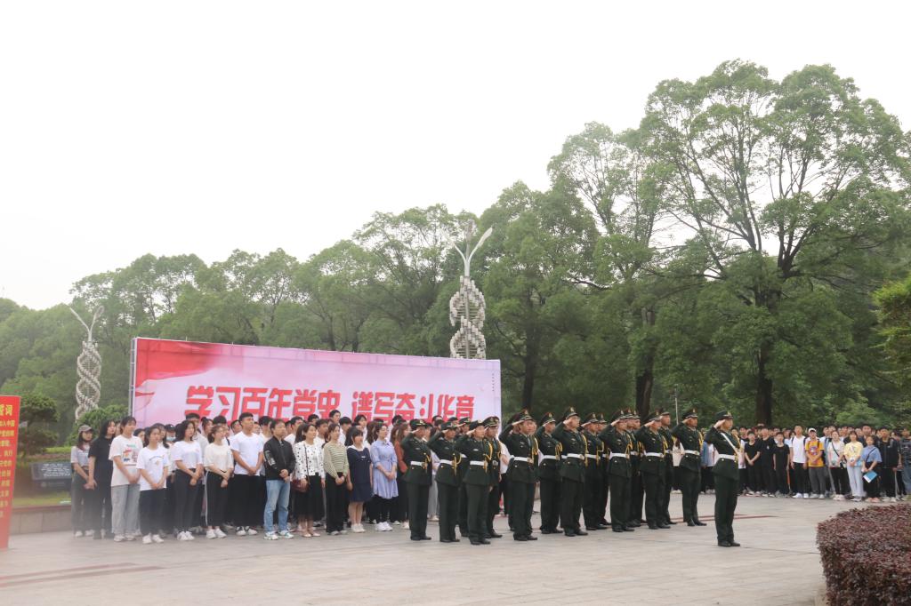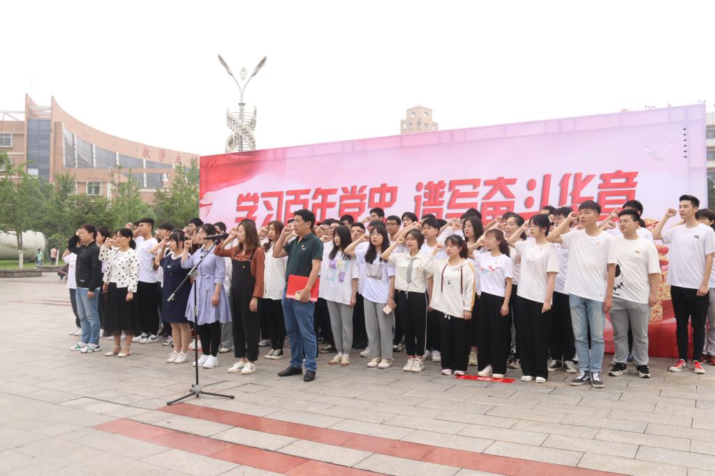 “学习百年党史,谱写奋斗华章。”5月31日早上6:30,beat365手机版官网入口在公司知行广场举行升旗仪式。公司党委书记黄望军教授、学办全体辅导员、团学会干部、20级全体同学参加。