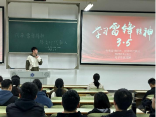 在班会上主讲人介绍了雷锋生前舍己为人、捐赠钱物、勤俭节约、做好事不留名等感人故事,号召同学们学习雷锋同志“为人民服务”的奉献精神、“钉子”精神、艰苦奋斗精神。