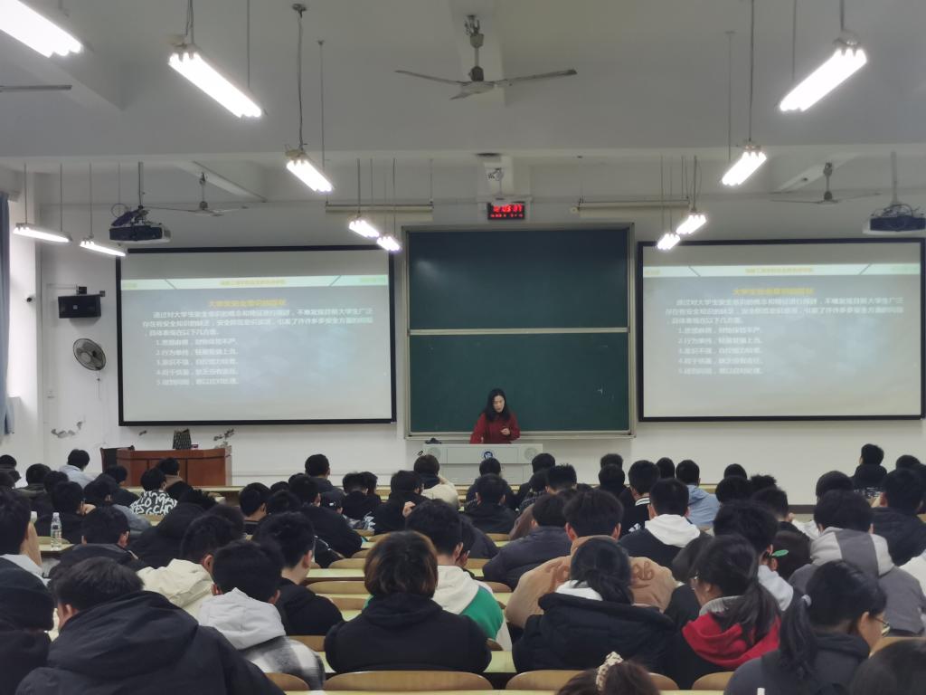 首先,贺梅向同学们讲解了安全教育知识,主要从四个方面进行展开。一是人身安全,包括火灾,溺水,砸伤,电伤,实验伤害等,并举出了多个惨痛的例子,贺梅强调要切实提高防范意识,在面对危险时及时保护好自己。二是财产安全,坚决不抵押任何证件,不听信他人的花言巧语,谨防高利贷风险和电信诈骗,贺梅向同学们讲述了校园内曾发生的寝室财产被盗、电信诈骗、校园贷等真实案例,警示大家要随时提防,避免不必要的损失。三是消防安全,学习消防常识,掌握一定的自救知识以及用电安全,强调了寝室禁止使用违规电器,并希望大家在遇到消防安全问题时能够冷静分析,做出正确的判断。四是交通安全,要时刻谨记安全第一,遵守交通规则,提高自身交通安全意识。