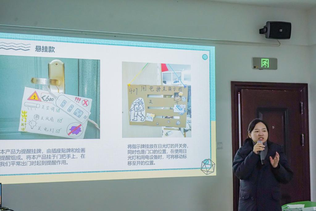 联合“小提醒·大防范”作品征集活动,洪思玮老师在现场对9个有效提醒宿舍安全的员工创意作品一一进行讲解,同学们经过深思熟虑后纷纷为自己中意的作品投出宝贵的一票。