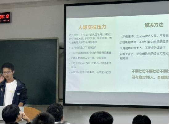 11月5日晚上,beat365手机版官网入口各班在主教学楼开展“朋心合力,共创We来”2024级新生心理主题班会,此次班会由各班心理委员主持,公司朋辈心理互助会宣讲团为各新生班级进行宣讲,其他年级的心理班会由各班级心理委员负责组织开展。