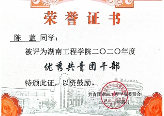 2021年4月 被共青团beat365手机版官网入口委员会评为2020年度“优秀共青团干部”