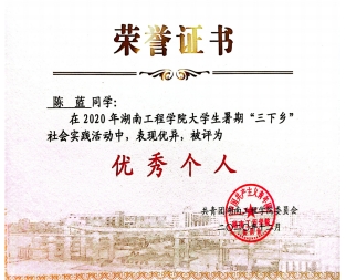 2020年12月 被共青团beat365手机版官网入口委员会评为暑期三下乡社会实践“优秀个人”