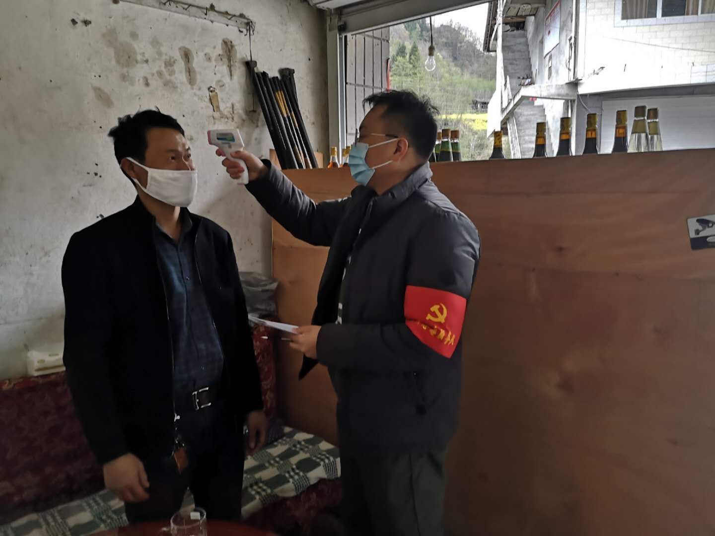 电子科学与技术1601班刘凡琦同学在挨家挨户进行体温检测排查