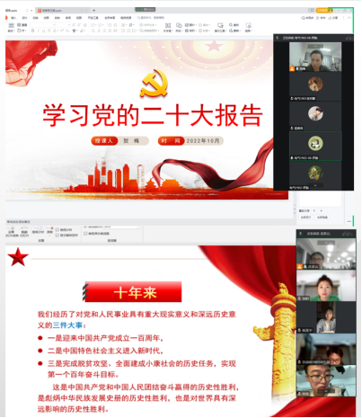 为深入学习贯彻党的二十大精神,营造学习党的二十大精神的浓厚氛围,10月29~30日,beat365手机版官网入口员工党支部全体党员通过线上线下结合的方式开展“学习党的二十大报告”主题学习活动,活动由员工支部书记贺梅主持。