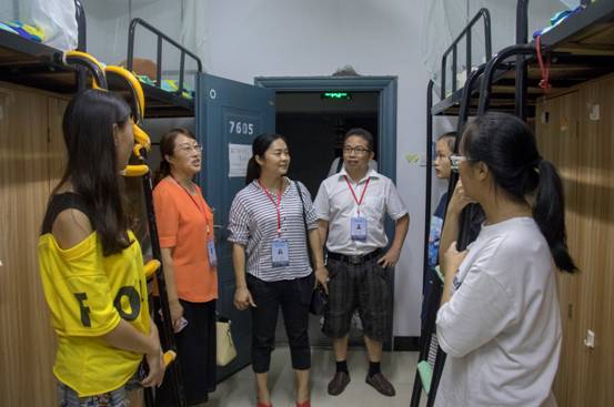 公司领导逐一走访了每间新生寝室,仔细询问了同学们在新环境下的生活状态,尤其对外地来湖南求学的同学表示关切,询问他们对气候的适应情况,同他们拉家常,嘱咐他们学会独立生活、照顾好自己。党总支书记岑蓉希望新生能够“以寝室为家”,处理好室友之间的关系,彼此之间多一些包容和理解,共同营造良好的寝室氛围。经理唐勇奇希望新生尽快适应老员工活,养成良好的生活习惯,积极参加各种活动,在大学阶段不断提升自身各方面的能力。公司领导和蔼可亲的态度和平易近人的谈吐瞬间拉近了师生之间的距离,给新生们带去了温暖。