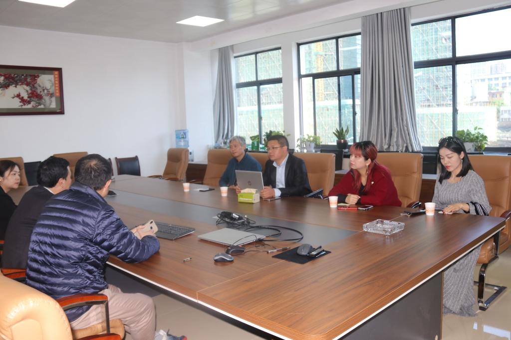 考察交流会在电气楼407会议室举行。会上,唐勇奇经理代表公司对来宾表示热烈的欢迎,并对公司专业发展、团队建设、人才培养及实验室建设等进行了介绍。孙绍泉、杨文武介绍了纺织行业面临设备智能化升级改造的巨变,面对如此机遇,长沙员工会决定成立纺织行业分会,目前该行业分会正在筹备中。员工会行业分会希望和公司进行深度合作,通过公司寻找湖南纺织行业、纺织配套电气行业优质员工资源,依托公司机械工程、电气及控制方向的强大技术力量,成立纺织电控智能化实验中心,对协会中的企业进行技术支持,实现共赢。