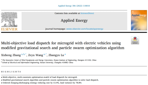 在beat365手机版官网入口70周年华诞之际,公司2019级硕士研究生王泽宇(Zeyu Wang)以论文成果形式献上对母校最真切的祝福,感谢母校的培养。文章“Multi-objective load dispatch for microgrid with electric vehicles using modified gravitational search and particle swarm optimization algorithm”发表于中科院一区TOP期刊《Applied Energy》,影响因子9.746。上述研究得到了国家自然科学基金的支持和研究生指导老师张细政教授的指导。