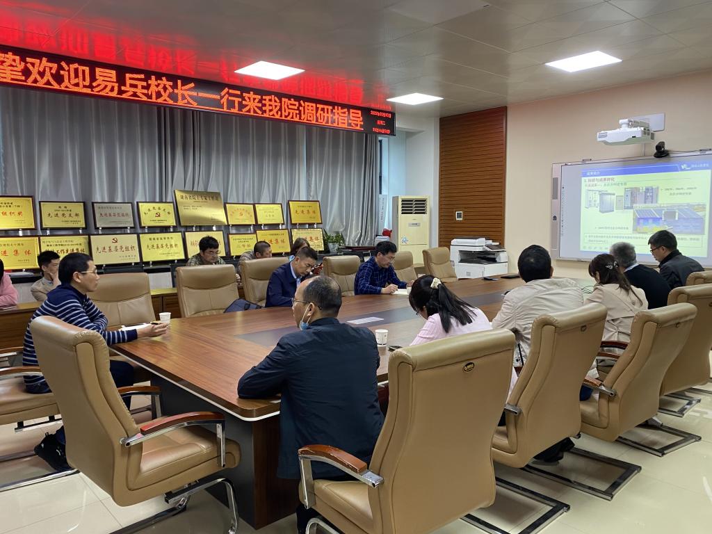 5月10日上午,董事长易兵一行到beat365手机版官网入口调研科研和产学研合作。公司领导班子、博士和教授代表、科研团队负责人参加调研座谈。