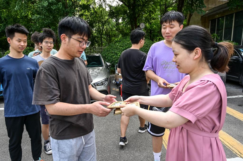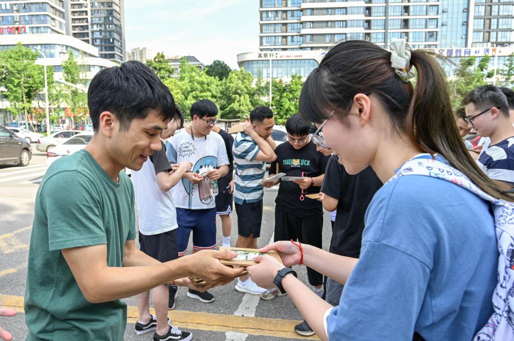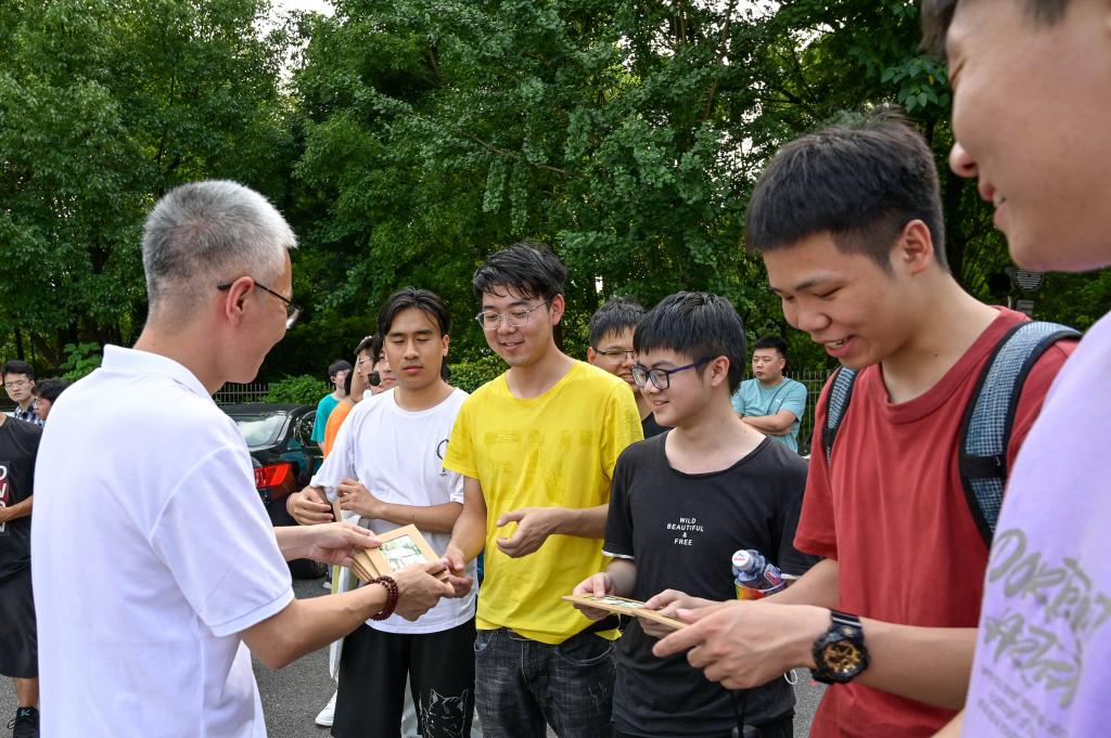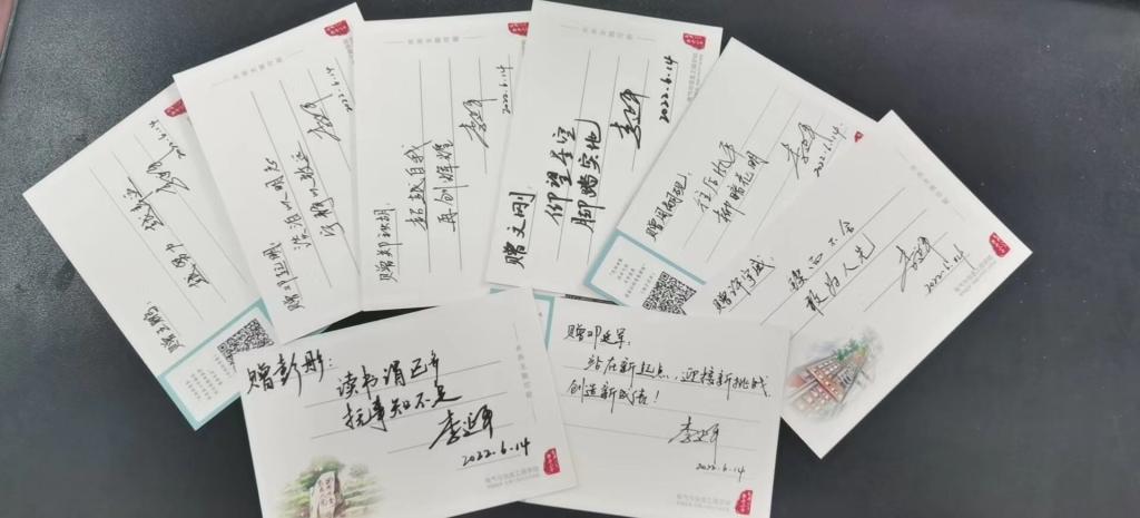 “记得来校报到那天,我和父母一起在校训石前合影。”“这些卡片满载大学四年的记忆,我一定会永远珍藏。”“现在就要说再见,感谢四年帮助过我的老师、同学们。”“即将远行,拿到公司的贺卡,将带着这些祝福启程。”毕业生纷纷表示。有的同学拿起手机扫描贺卡背面的二维码,《栀子花开》的声音传来,同学们也不自觉的跟着哼唱起来“光阴好像流水飞快,日日夜夜将我们的青春灌溉……”唱出了对美好青春的回忆。