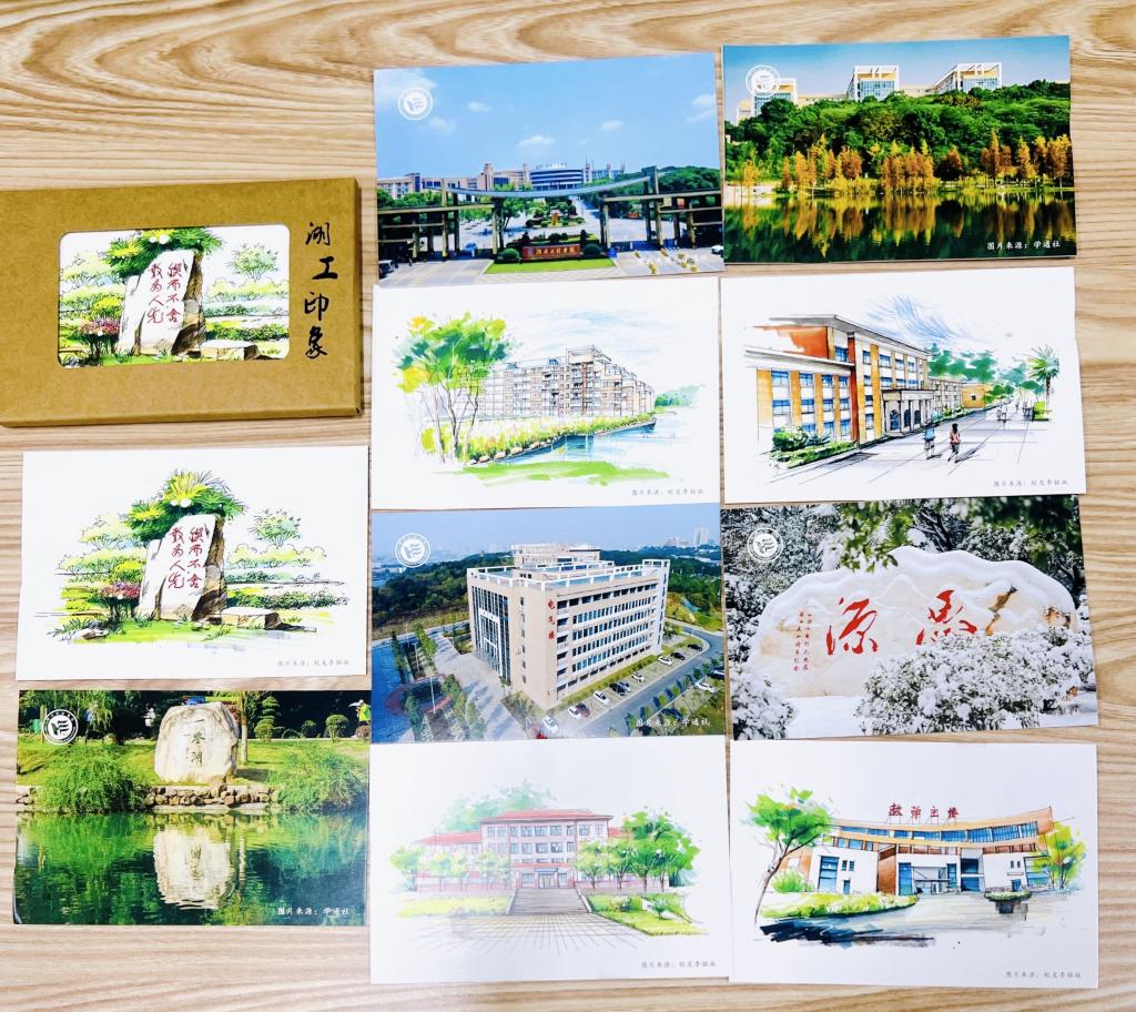 校训石、教学楼、图书馆、一鉴湖、电气楼……一张张温馨的卡片、一个个熟悉的地点,勾起了毕业生大学四年学习和生活的点滴回忆,这是公司送给毕业生的专属贺卡——“湖工印象”。