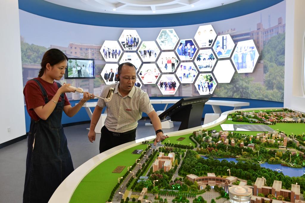 “公司有着71年办学历史,秉承 ‘初心为工,以工许国’的理念,向社会输送大批高素质工程应用型人才。”“这是图书馆,馆藏资源丰富,自习室都装有空调。”“这里是亲民员工公寓,空调、热水配备齐全。”“这是‘海韵丹桂园’,2019年两位员工捐赠丹桂树,种植在图书馆后坪。”……直播镜头里,公司党委副书记李延平向家长们介绍公司的办学历史、特色和员工的住宿、学习环境。
