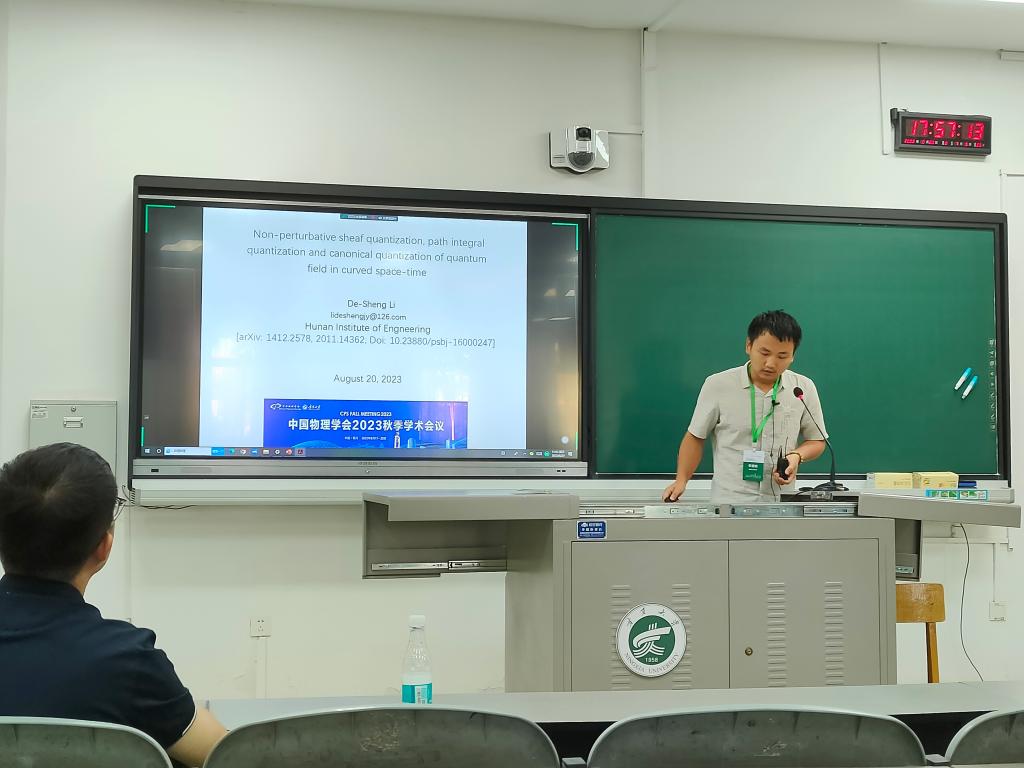 8月17日至20日,由中国物理学会主办、宁夏大学承办的中国物理学会2023秋季学术会议在宁夏大学举行。公司beat365手机版官网入口李德胜博士应邀参会并作题为《弯曲时空量子场论的非微扰层量子化、路径积分量子化与正则量子化》的学术报告。