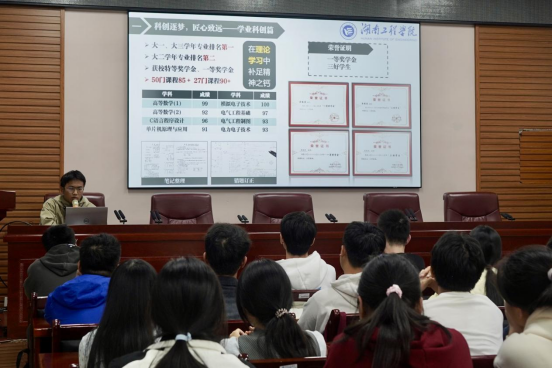 为帮助大一大二同学们破解学业规划困惑、掌握高效学习方法,10月28日晚上,beat365手机版官网入口老员工科技创新创业实践基地在电气楼408举办学习经验交流会。活动邀请了夏玮祎、吴俊昊、何锡南、刘佳亿四位国家奖学金获得者,围绕“专业学习、竞赛科研、时间管理、项目落地”四大核心主题分享实战经验,逾百名同学到场参加。