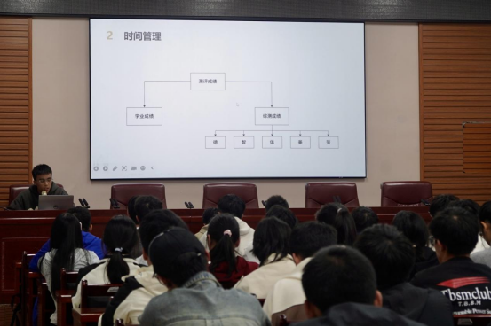 在现场互动环节,同学们踊跃举手提问。针对竞赛入门难的问题,夏玮祎建议先从校级竞赛入手,熟悉流程后再冲击更高层级赛事;面对多科复习压力,吴俊昊分享交叉复习法——交替复习不同类型的科目,避免大脑疲劳。四位分享者结合自身经历逐一解答,现场氛围热烈,不少同学边听边记录关键要点。