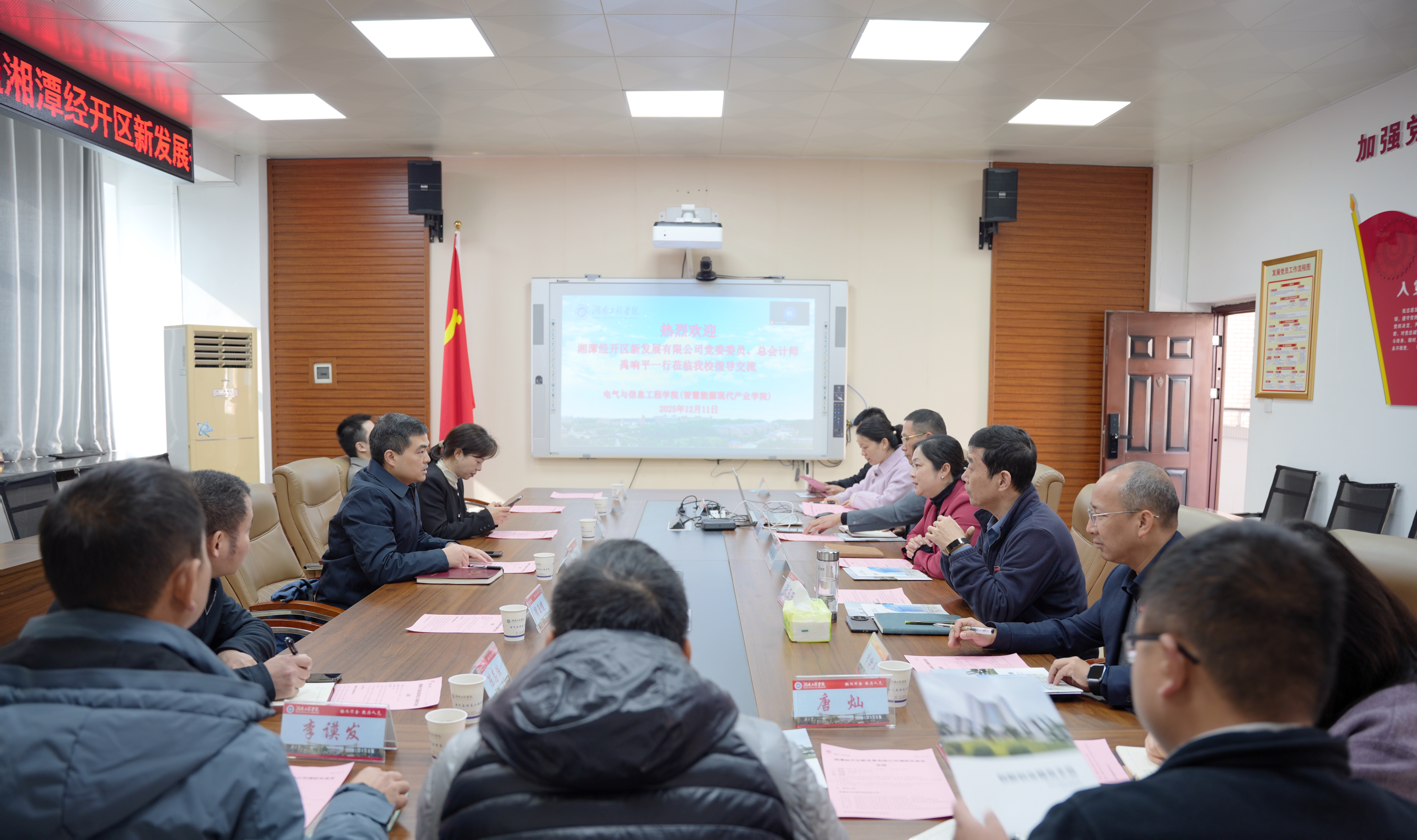 胡慧详细介绍了公司办学特色与核心优势,她指出,作为公司办学规模最大的工科院系,公司博士教师占比近五成,团队队伍结构优良;电气工程、自动化等专业为国家级一流本科专业建设点,学科实力突出;公司产品体系成熟完善,近年来生源质量与培养质量稳步提升,且拥有省级重点实验室、校企联合研发中心等多个科研平台,为产学研深度合作奠定了坚实基础。禹响平则围绕湘潭经开区专业化改革进程、产业布局规划展开介绍,重点聚焦新能源装备、电子信息等核心产业的发展现状与人才需求,提出希望依托高校智力资源与科研优势,破解产业发展技术瓶颈。