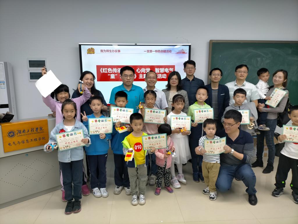 公司党委副书记李延平带领小朋友参观了风力发电、智能微电网、智能机器人实验室、老员工科技创新创业实践基地,并进行科技作品展示、科普宣传,以通俗易懂的语言介绍所涉及的相关电气知识,讲授技报国的故事,传递爱党爱国情怀,展现科学研究魅力。小朋友们对展示的作品表现出浓厚的兴趣,党员老师和小朋友一对一完成一件件电气产品套件的制作。在老师的帮助下,小朋友们组装和制作了蜘蛛机器人、手摇发电机、仿生机器狗、漫步机器人、太阳能小车等有趣的玩具,制作完成后作为活动礼物赠送给了小朋友并颁发实践活动证书。
