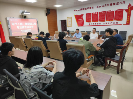 加深电气工程和新能源工程专业员工对本专业的认识,解答同学们在学习和就业上的疑惑,4月23日晚上,电气工程和新能源教研室在电气楼407会议室举行师生座谈会。本次座谈会由电气工程教研室主任刘婷主持,新能源工程教研室主任蔡斌军、电气工程教研室副主任钟义长、电气工程教研室教师宋运雄和沈仕其出席,相关专业班级的员工干部代表参加。